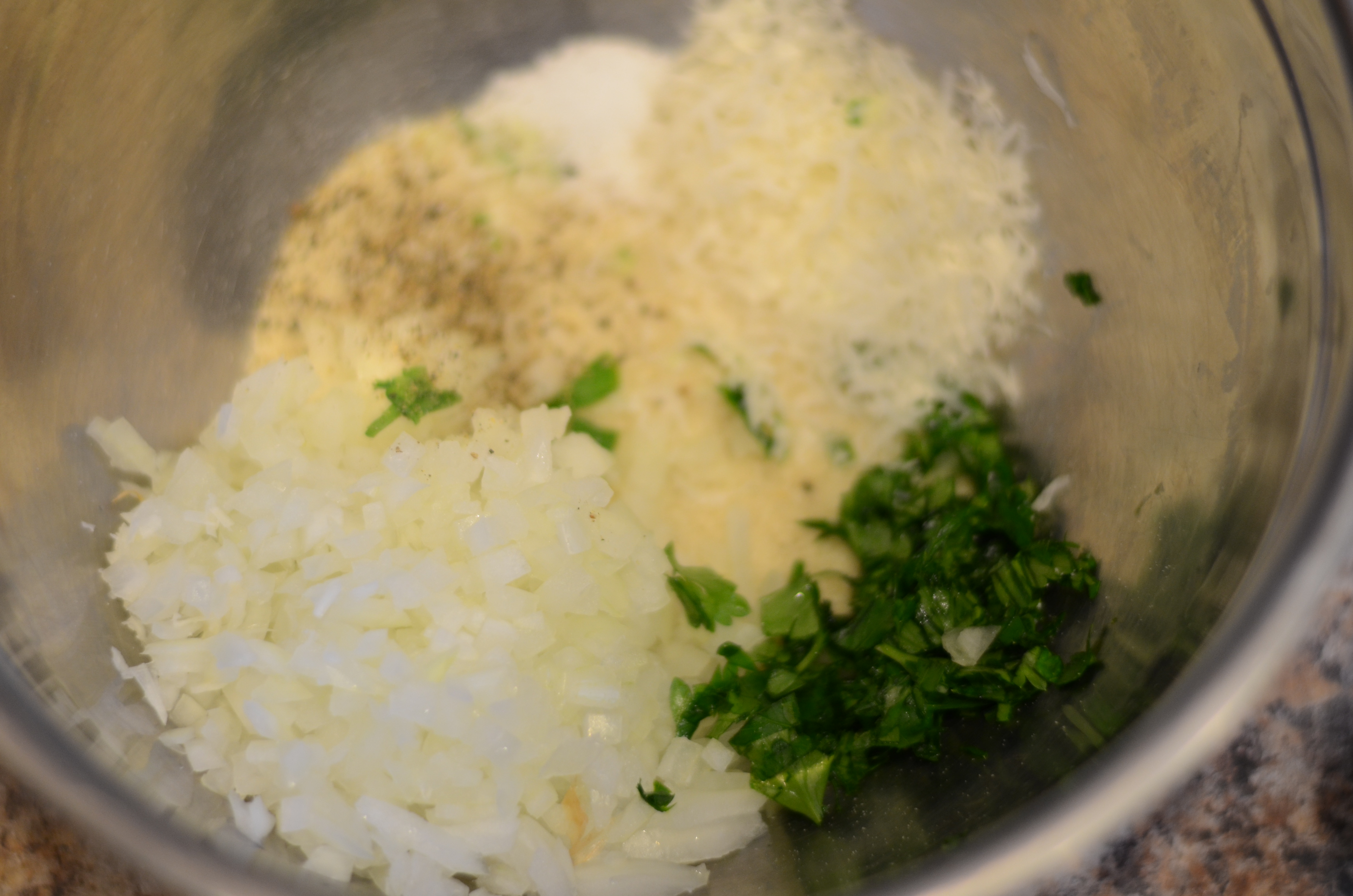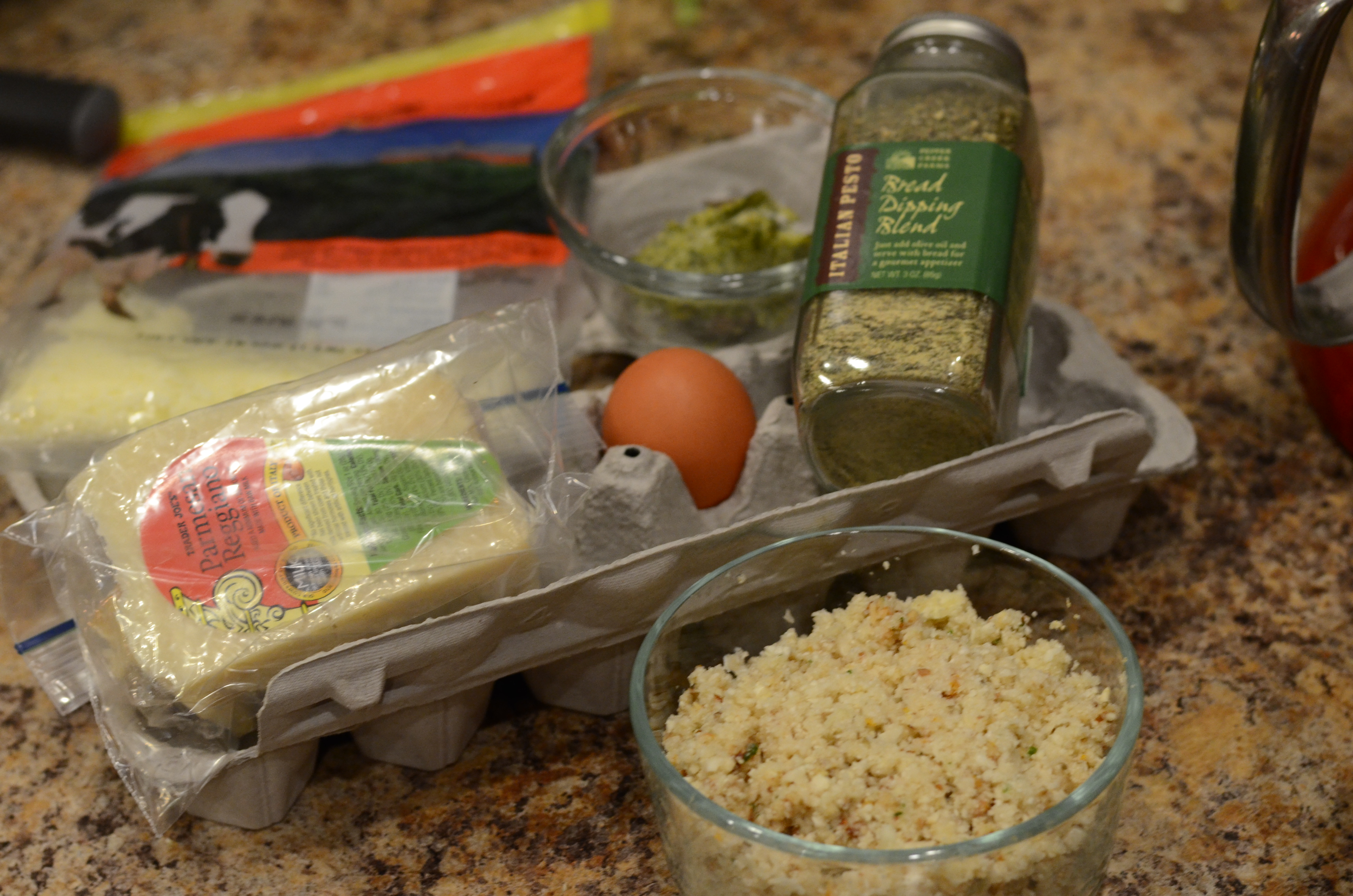 Approx. 2 Cups of my leftover cauliflower pesto mix, or just raw cauliflower ground in a food processor