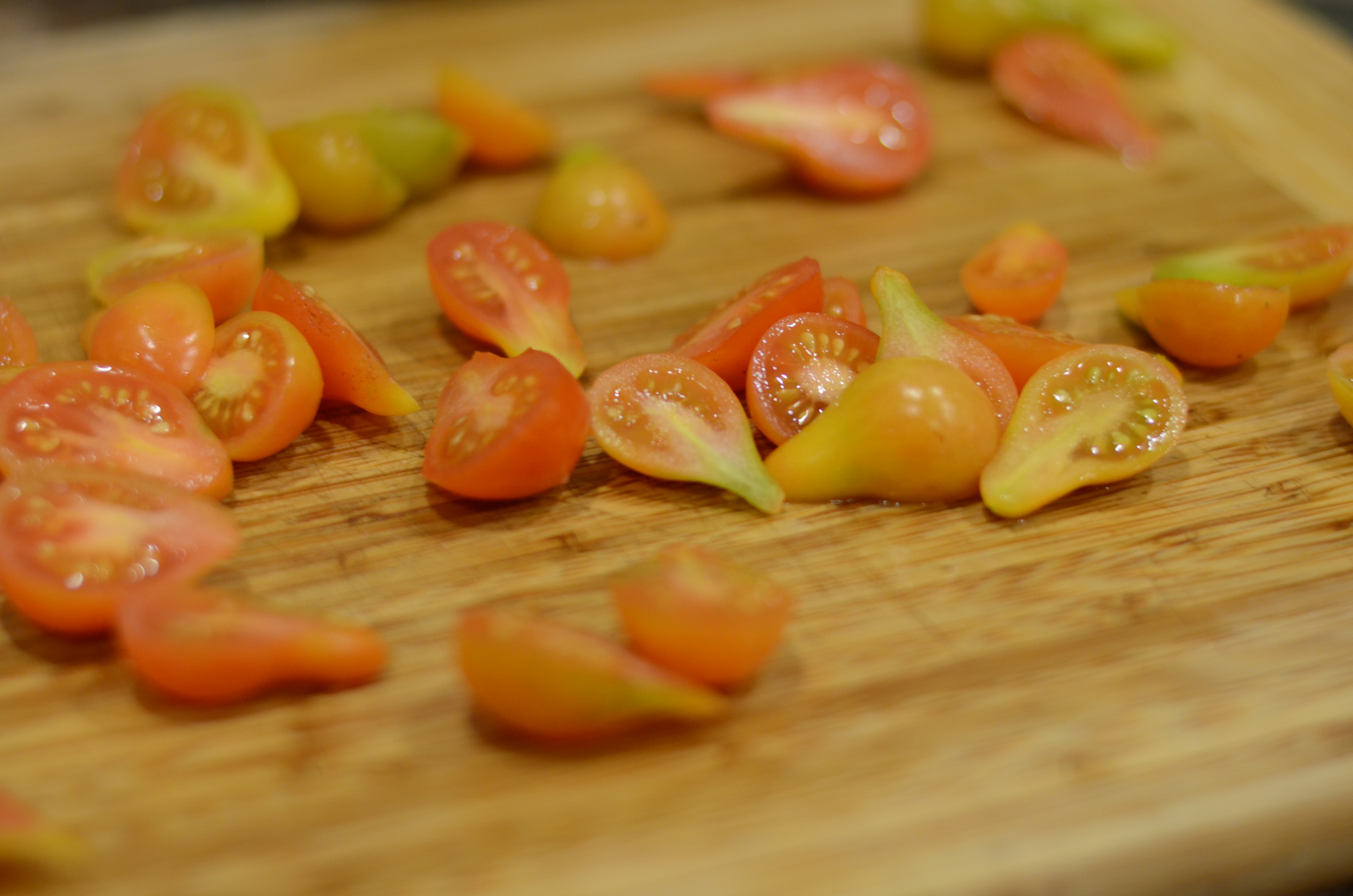 And halved the tomatoes from my garden (this is the last of the ripe ones!)