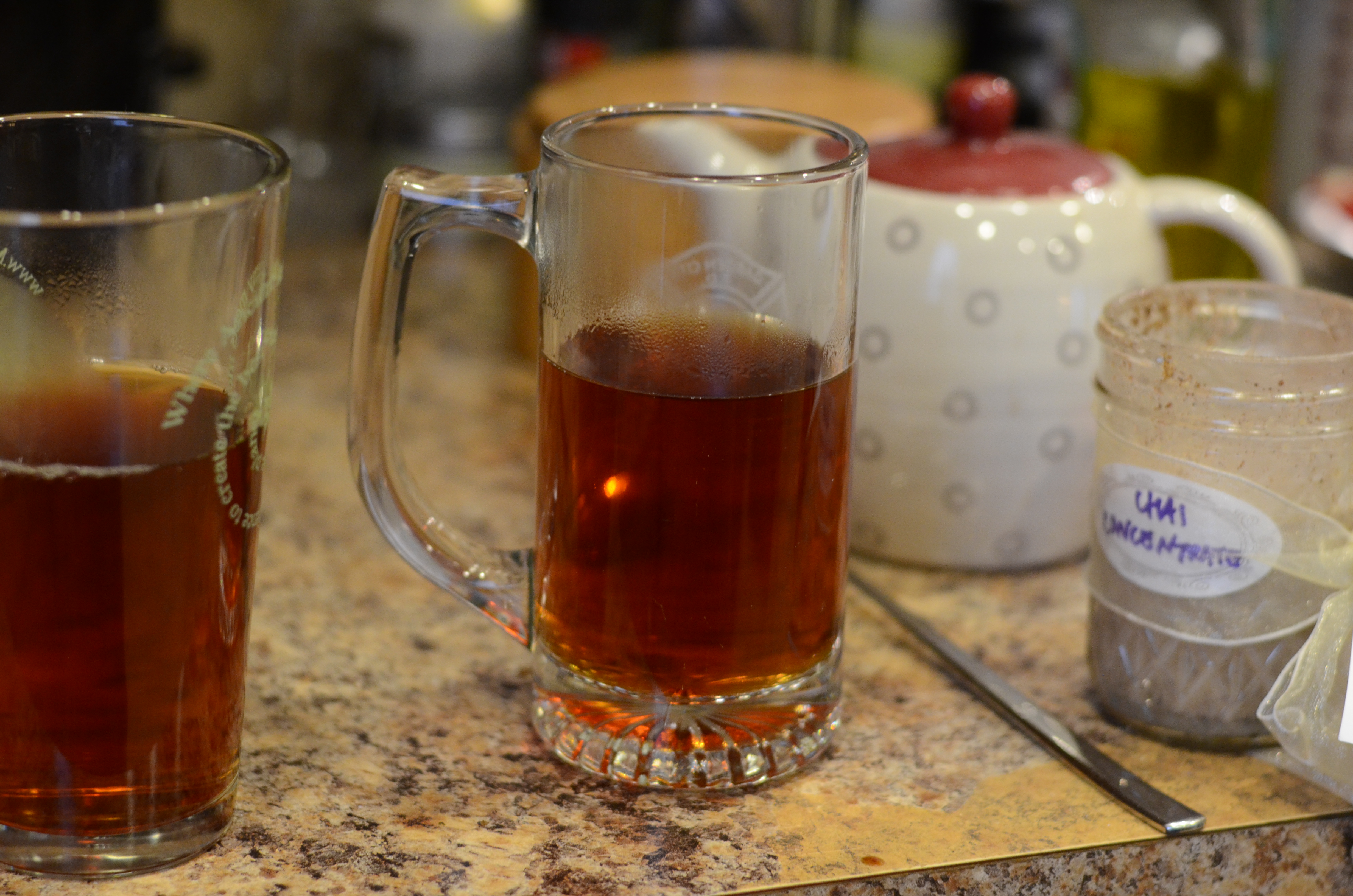 I incorporated not one but TWO homemade holiday gifts I had received: a spiced rum, and a chai tea concentrate. I realize that this means you’d have hard time replicating it, but I will include a suggestion that uses your own ingredients as a shortcut.