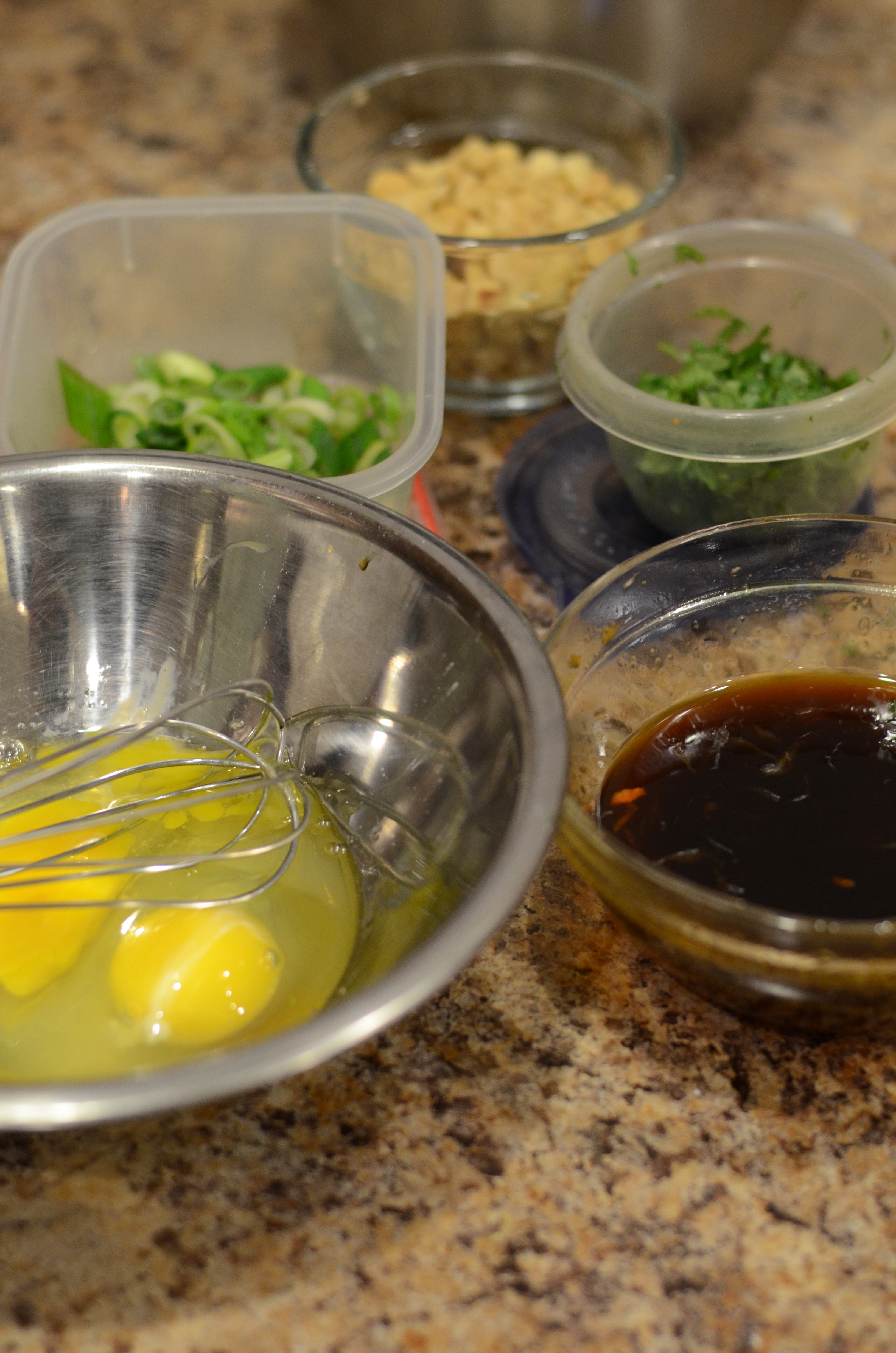 Preheat the oven and roast your garlic cloves and peppers, if starting from scratch. I usually cook these at around 375F.