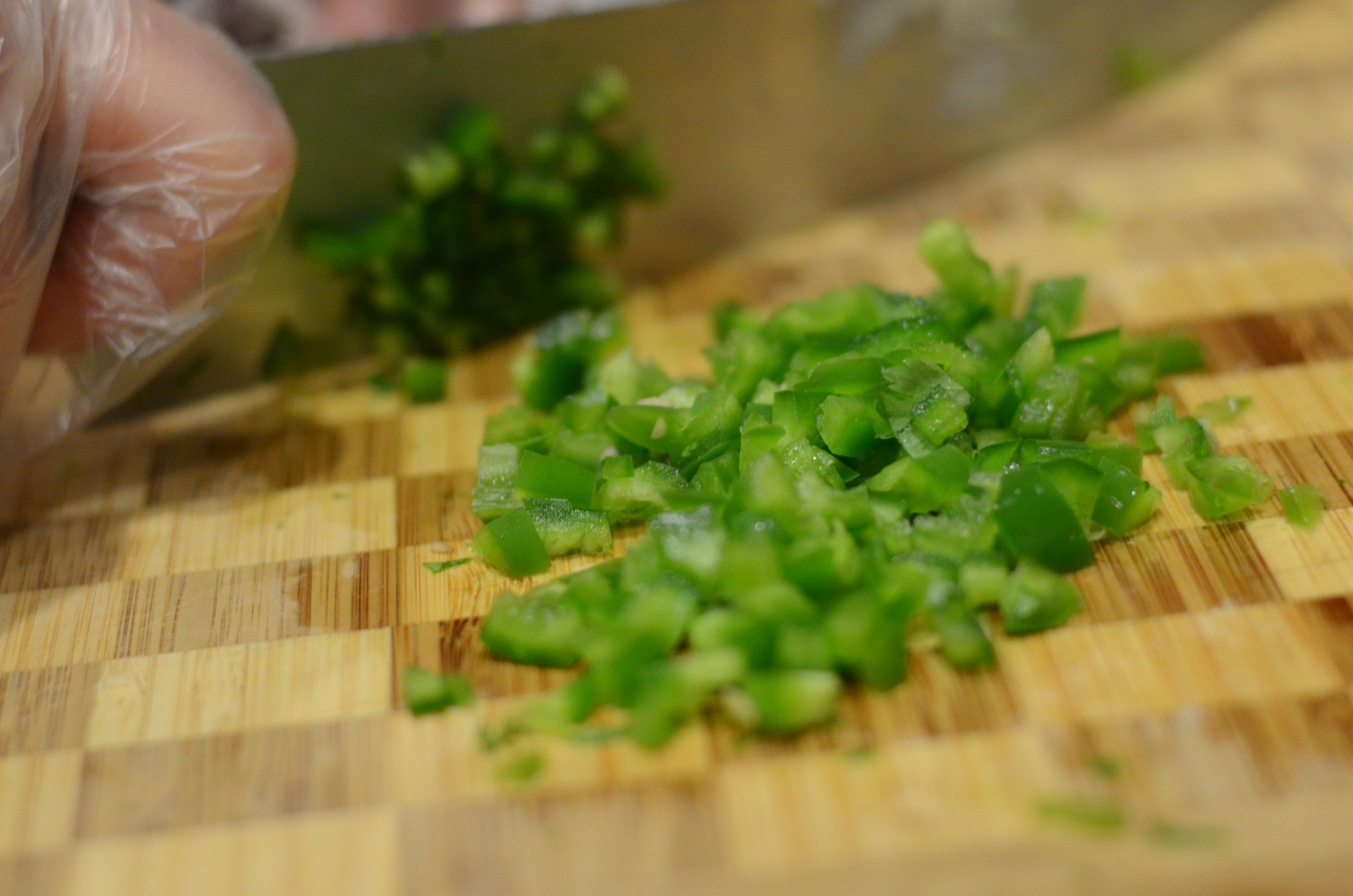 For the meatballs, first prepare to sauté the vegetables by prepping the first four ingredients.