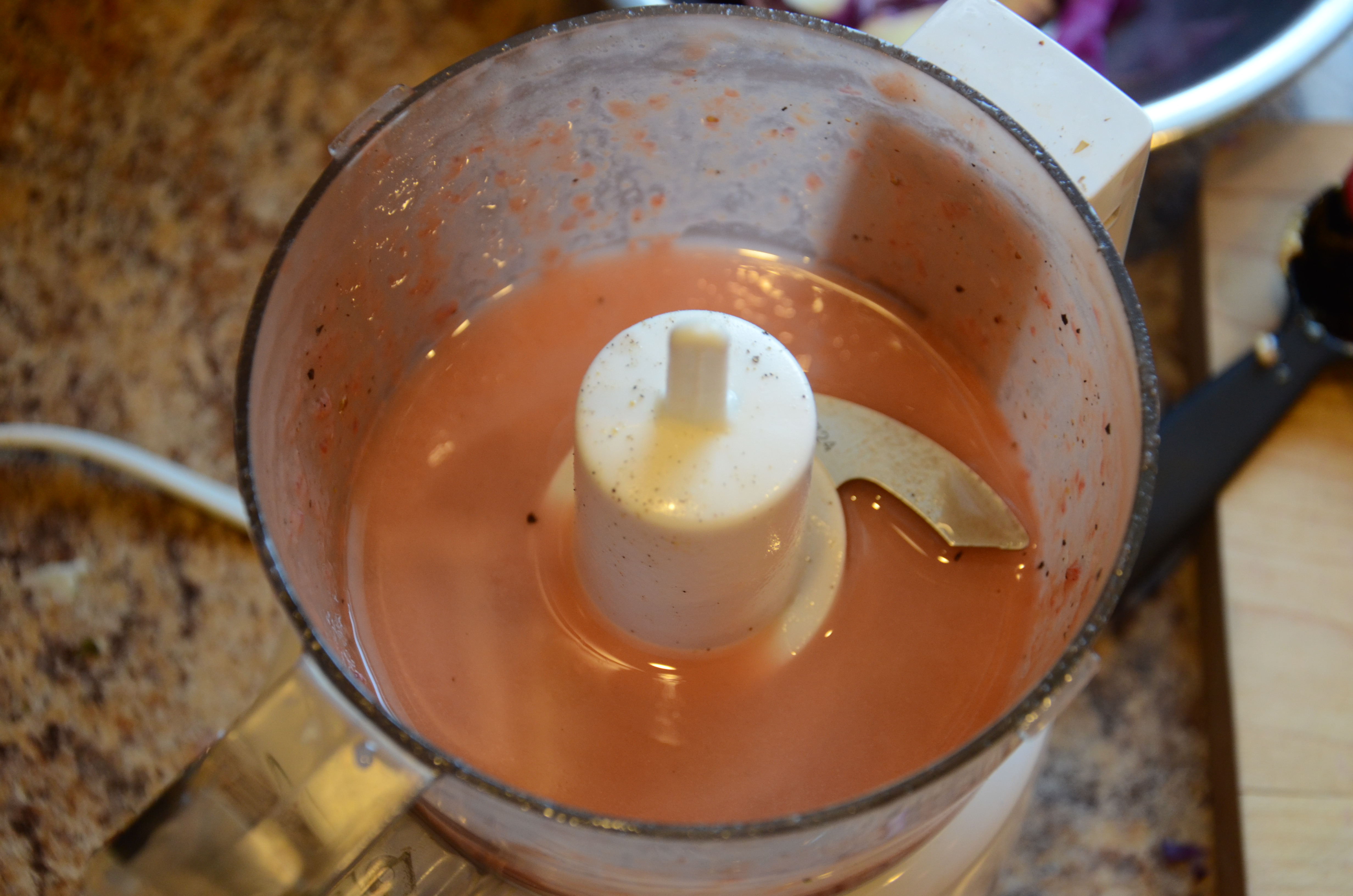 Remove from heat and allow to cool while you chop and measure the remaining meatball ingredients. In a mini food processor, place mushroom mixture along with the red miso. Pulse until very finely chopped, scraping down as needed.